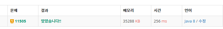 시간이랑 메모리 차이 많이내고 1등해서 기분이 좋았다.